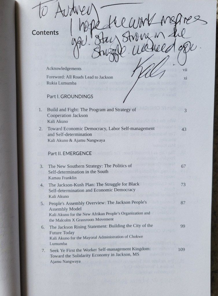 In the years following the 2014 police killings of Michael Brown and Eric Garner, Eso Won, along with the California African American Museum, was the location to hear Black writers and activists engaged with political and social life talk books and politics. It was at Eso Won that I heard Kali Akuno, co-founder of Cooperation Jackson, a Mississippi cooperative, speak about his book, Jackson Rising. That was an evening in 2017 when I headed to the bookstore after work. As they normally did on evenings of book talks, Fulgate and Hamilton converted the small walking space inside the bookstore into an auditorium by bringing folding chairs from the backroom and arranging them on the salesfloor. Using a small desk as his podium, Akuno faced the audience as we sat on the metal chairs anxious to hear his reasons for leaving California and starting a cooperative in the South.